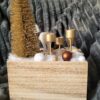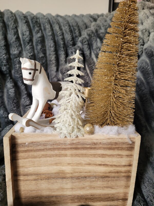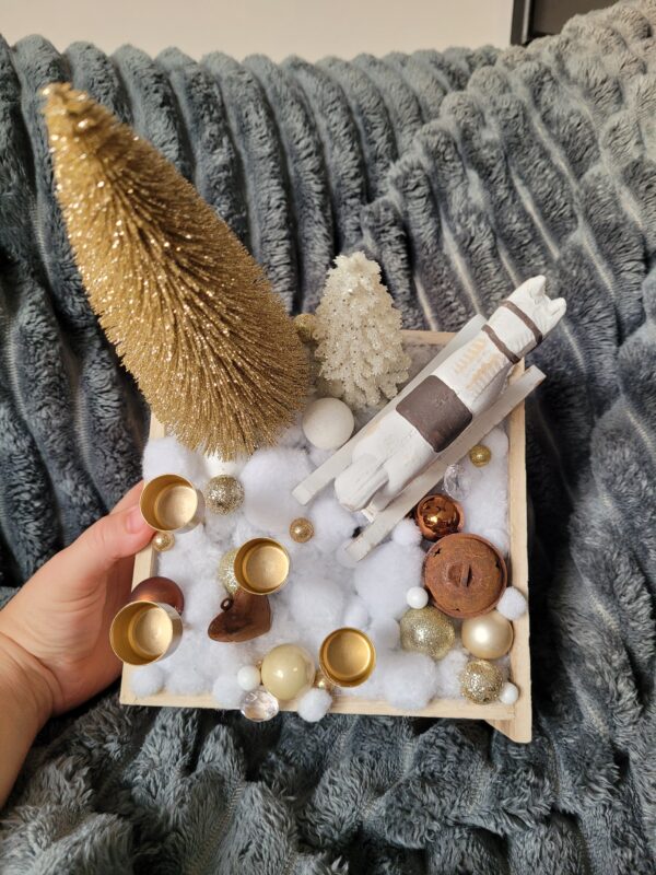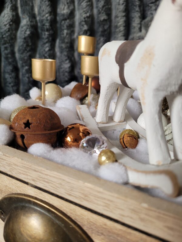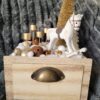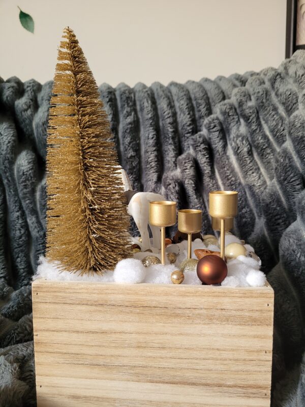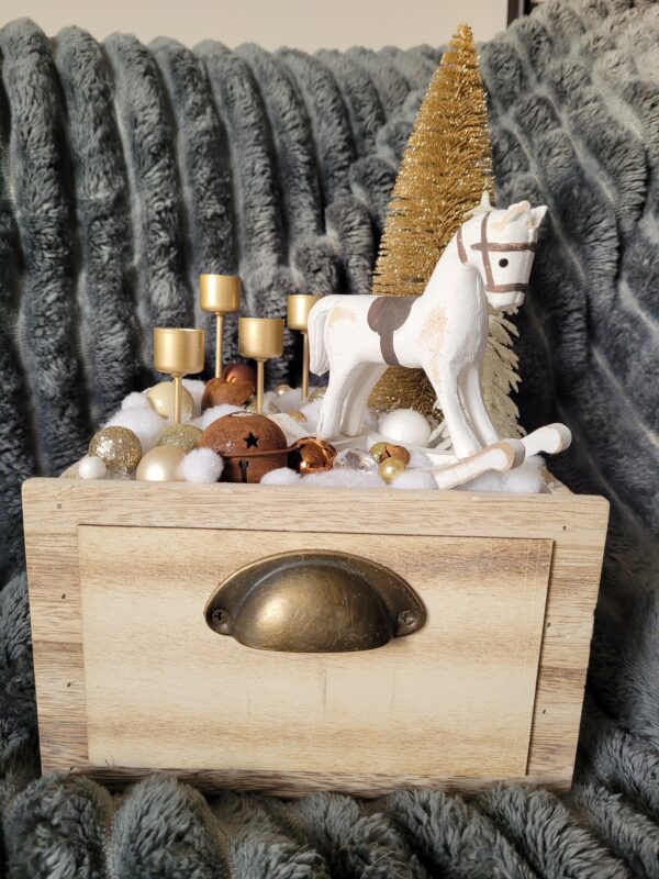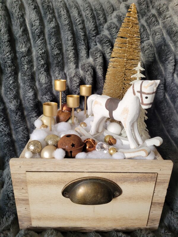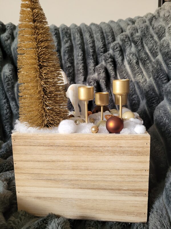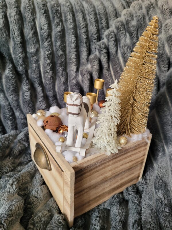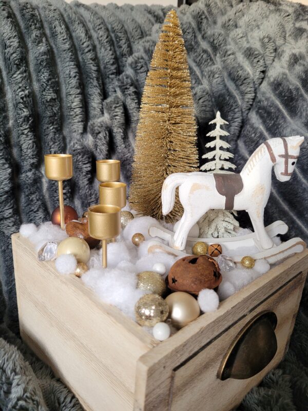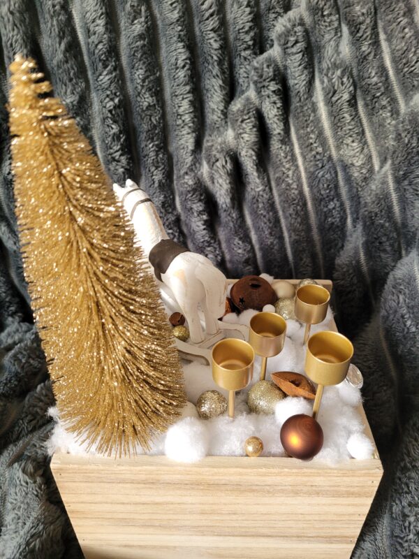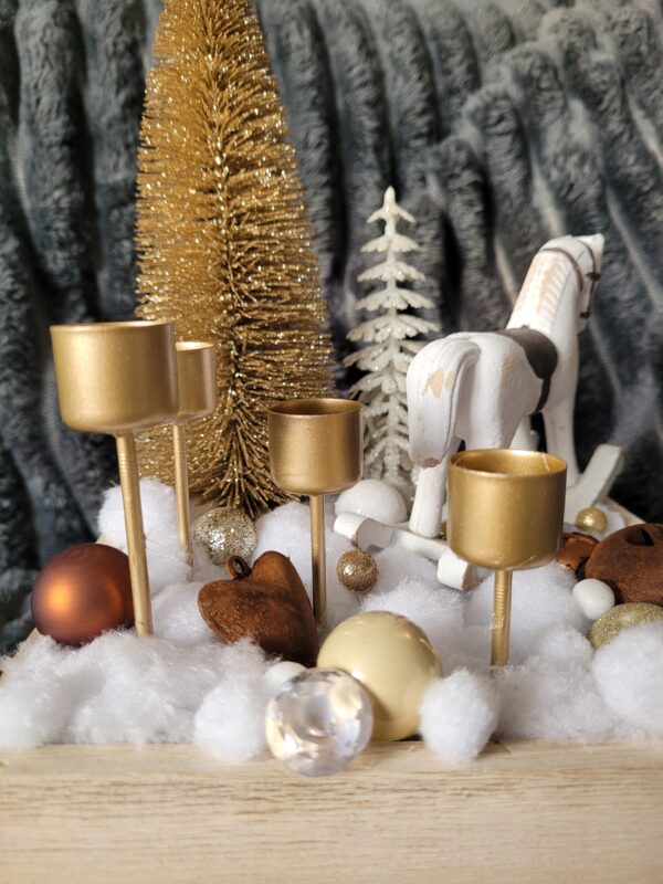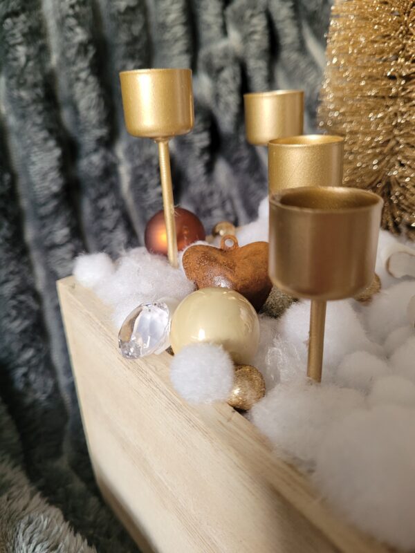 Adventní šuplík na 4 stolní svíčky. V hnědých a zlatých tónech.