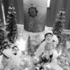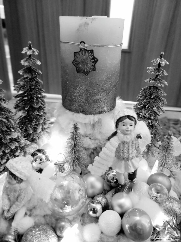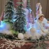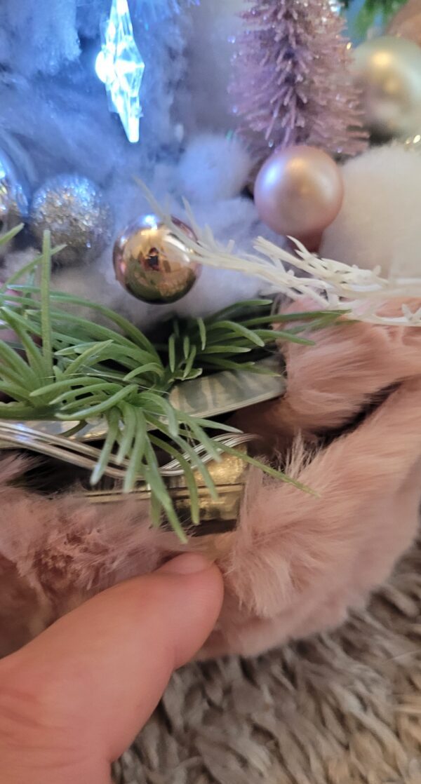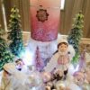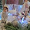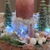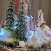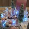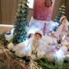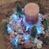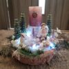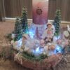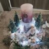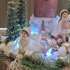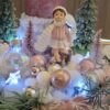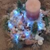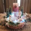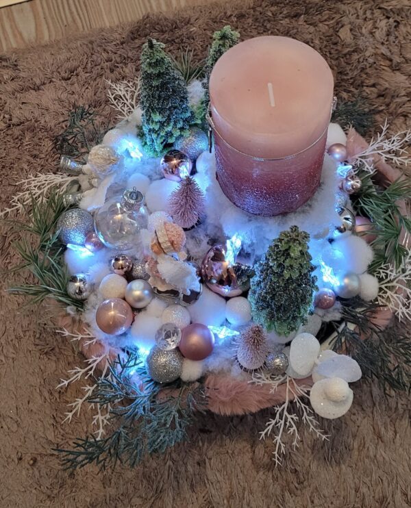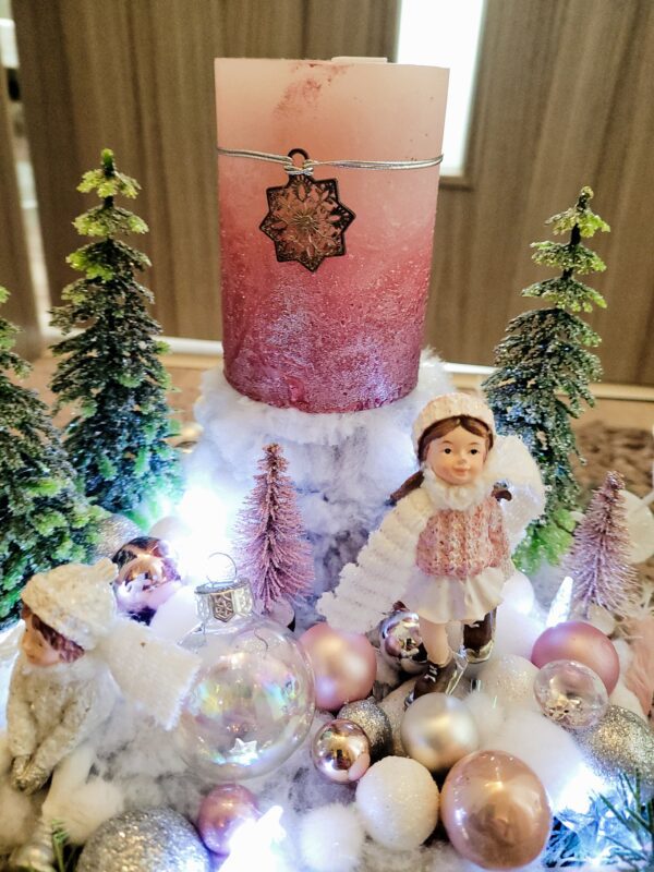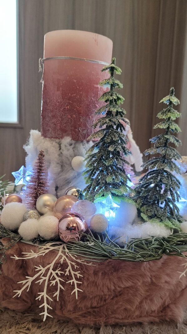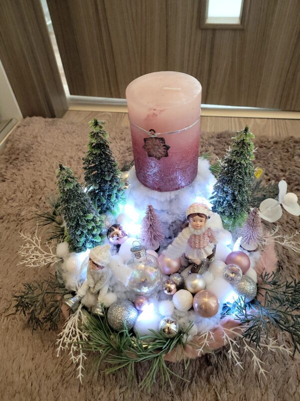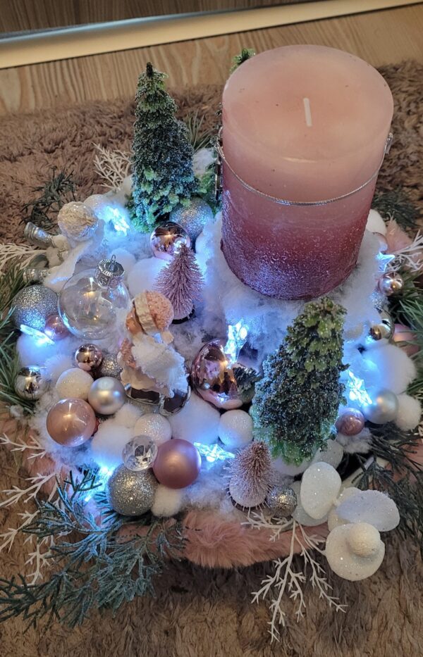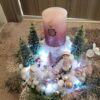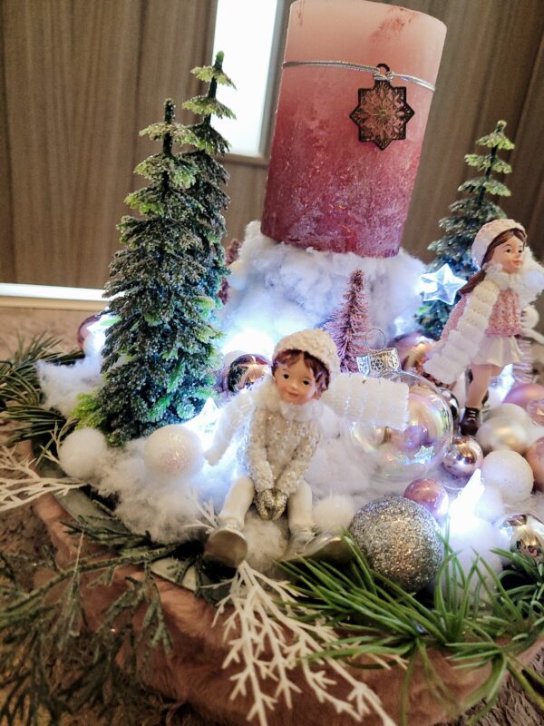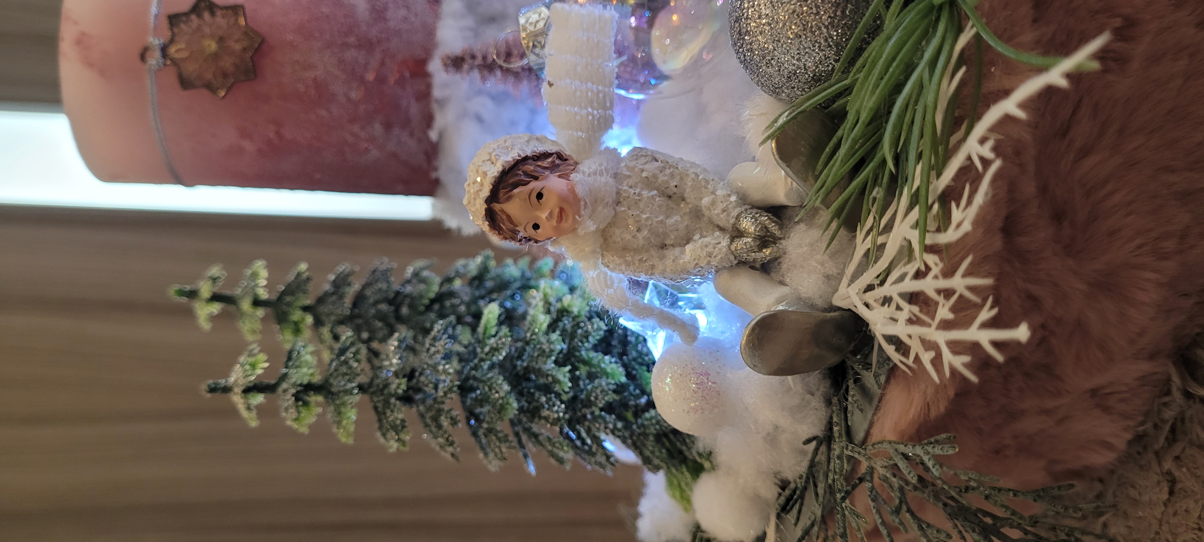 Vánoční dekorace Růžové děti se svíčkou a světýlky. Základna 28 cm. Trafíčko na baterie schované v kožíšku.