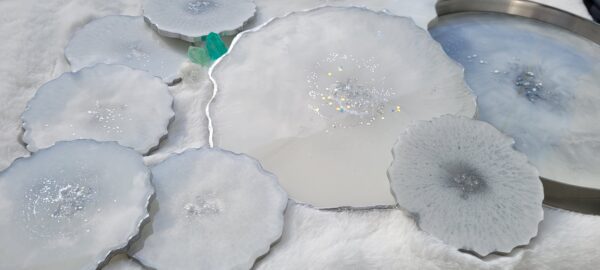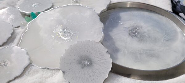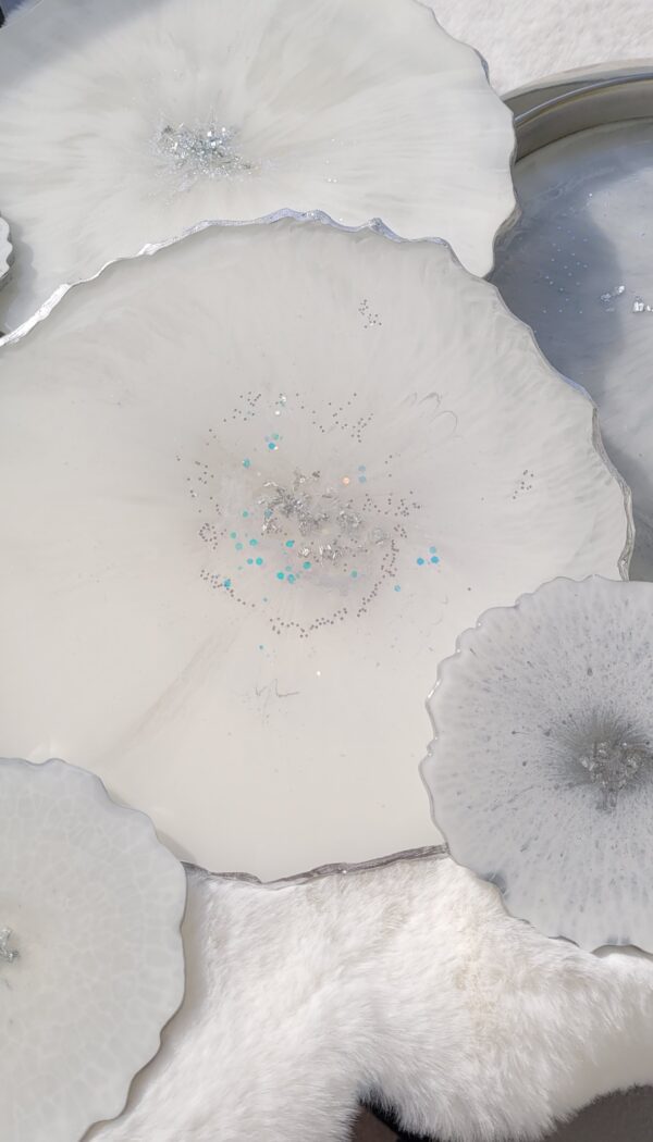 Set velkého tácu 30cm, 6ti podtácků na hrnky/sklenice a dvou velkých dekoračních tácu 26cm.